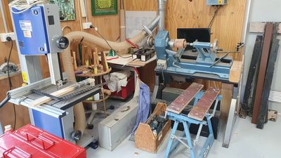 · A bandsaw, scroll saws, and a wood turning lathe which are at a lower height to allow a person in a wheelchair to use.